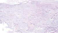 Figure 4. Photomicrograph of lesional skin biopsy showing epidermal necrosis and a massive dermal infiltrate of neutrophils (hematoxylin-eosin, original magnificationx40).