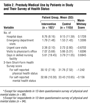 Table 2. Prestudy Medical Use by Patients in Study and Their Survey of Health Status