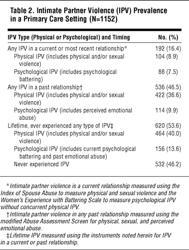 Table 2. Intimate Partner Violence (IPV) Prevalence in a Primary Care Setting (N=1152)