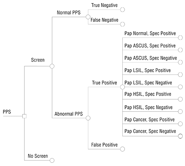 Figure 2. Papanicolaou (Pap) test plus speculoscopy (PPS) (screening state). Spec indicates speculoscopy; ASCUS, atypical squamous cells of undetermined significance; LSIL, low-grade squamous intraepithelial lesion; and HSIL, high-grade squamous intraepithelial lesion.