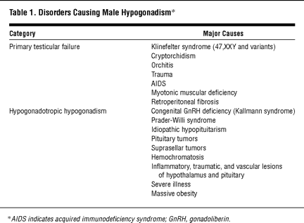 Table 1. Disorders Causing Male Hypogonadism*