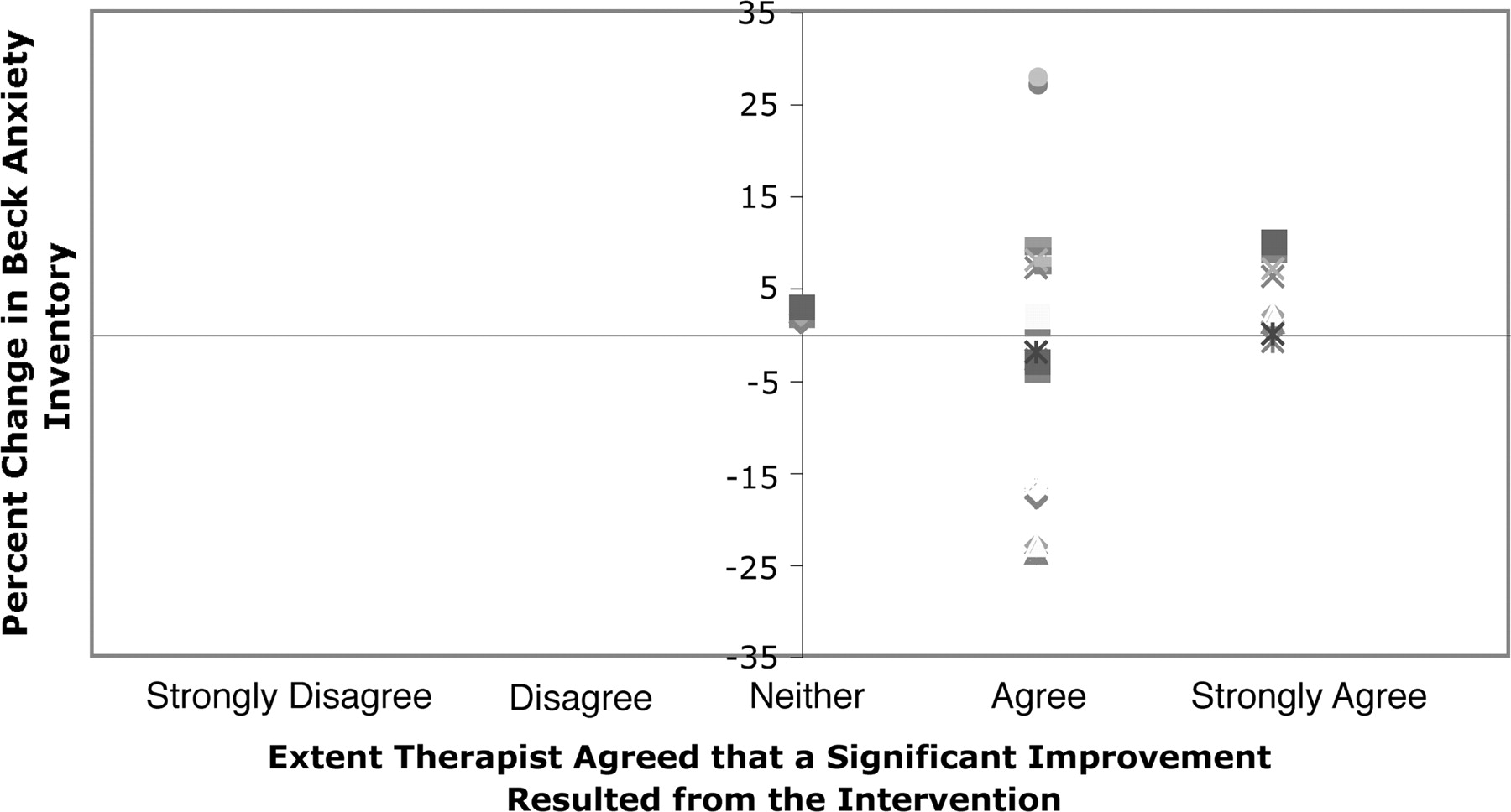 FIGURE 1 Therapists' perception of their treatment's effectiveness with anxiety.