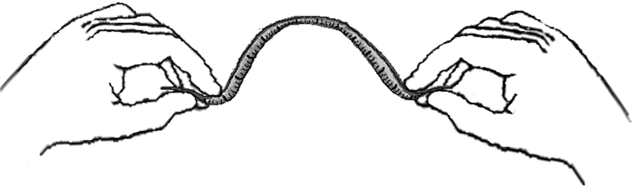 A flexible beam represented by a metal measure tape is held tightly on both of its ends. In order to pull the tape upwards an extra force is required to overcome the friction. Spontaneous straightening of the beam is not possible because its shear force is insufficient to overcome friction at the side points. Therefore, if no movement occurs at the side points, no force will be delivered by the beam at the midpoint.