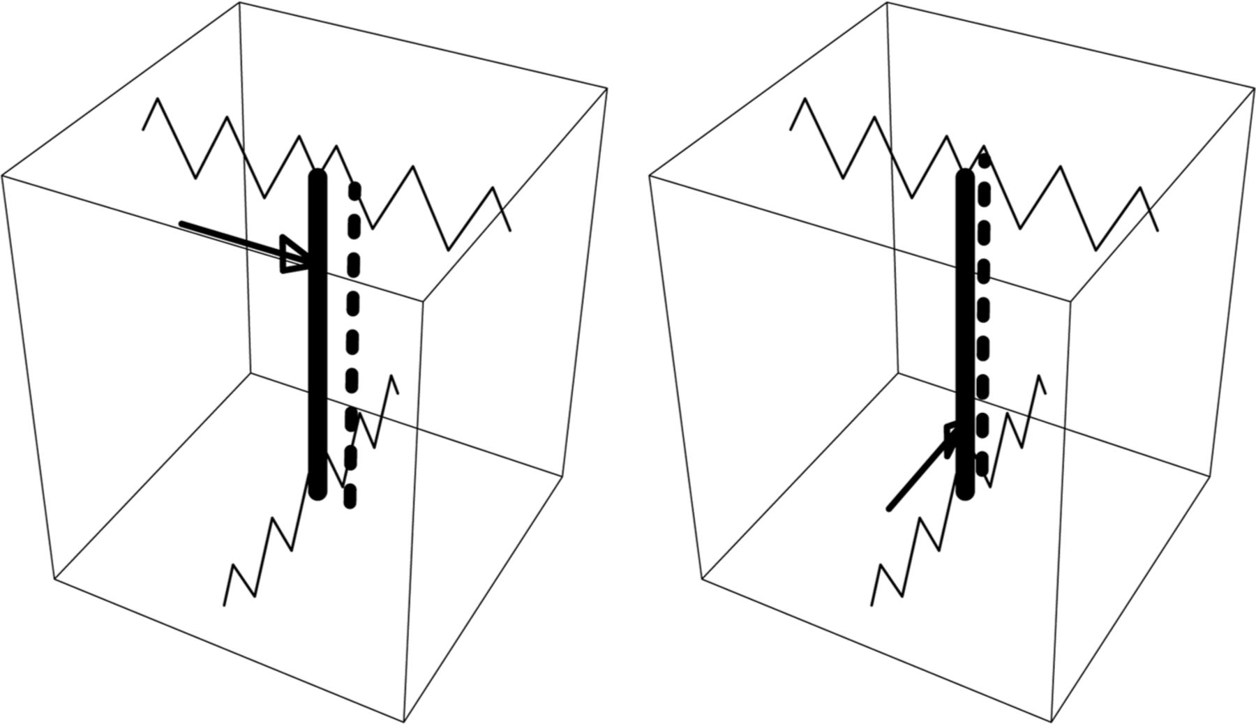 The position of force-acting lines to achieve a pure translation on the model (for further details, refer to the text).