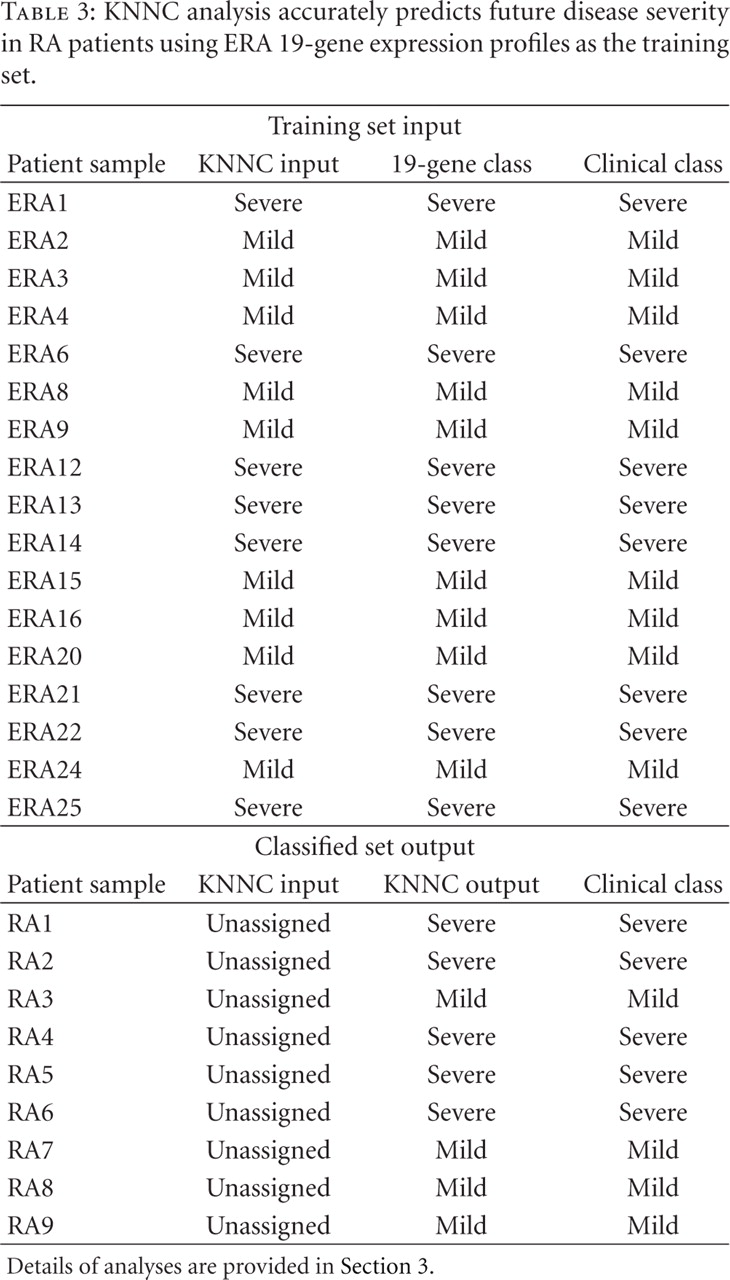 Prediction of Disease Severity in Patients with Early Rheumatoid Arthritis by Gene Expression Profiling