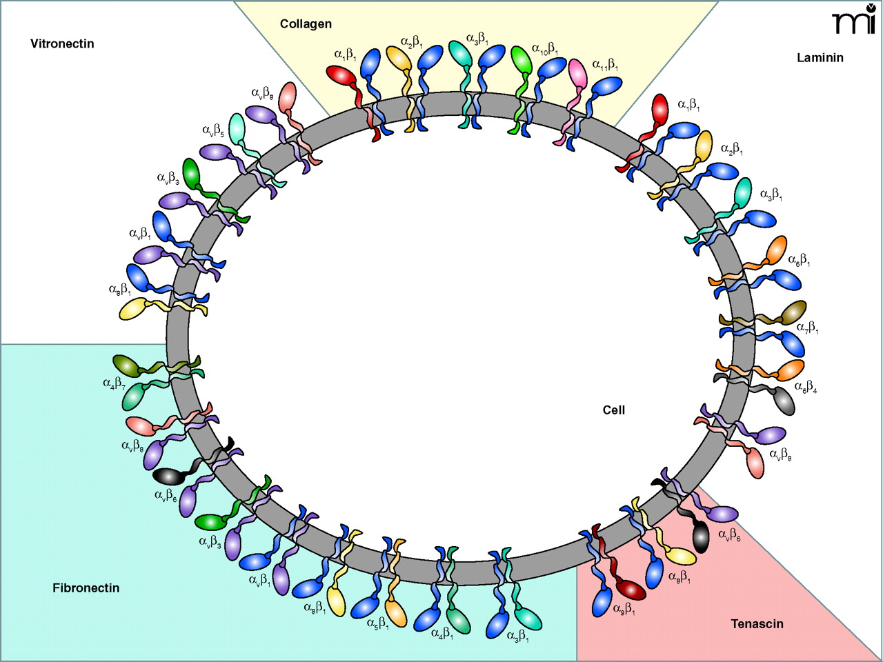 preferences for collagen, laminin, tenascin, fibronectin, and vitronectin.