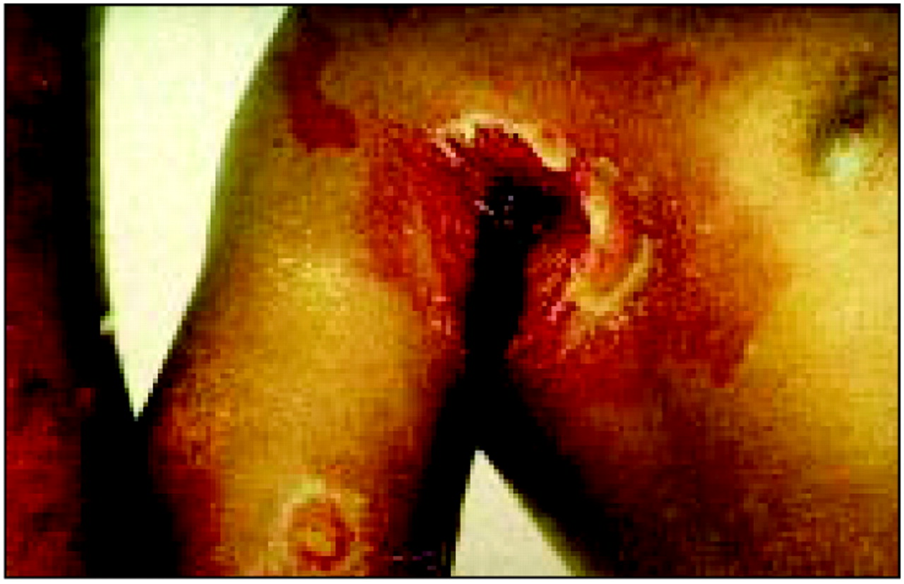 Effects of mustard gas on an Iranian soldier from the Iraq–Iran war of 1982. Reproduced with permission from the British Journal of Medicine (14).